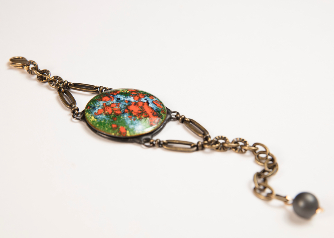 Vintage Enamel Funky Domed Disc. Brass Ox / 6.5-8.5" Necklace Ext. Incl