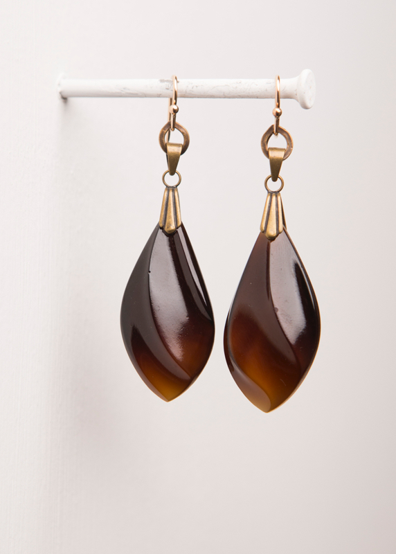 Vintage Czech Glass Teardrop Brass Ox 2.5" Length 14kt. G. F. French Wires