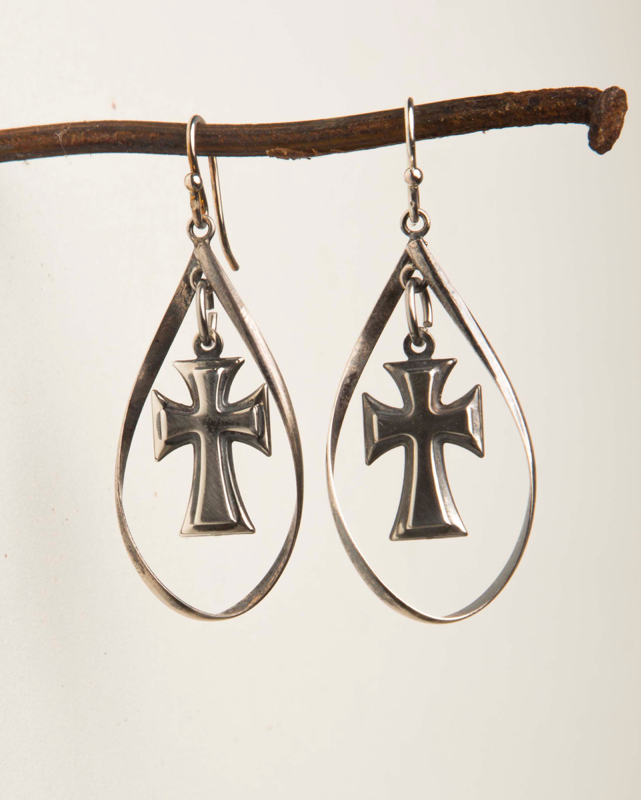 Sterling Silver Cross & Teardrop 1 3/4" Length / Sterling French Wires