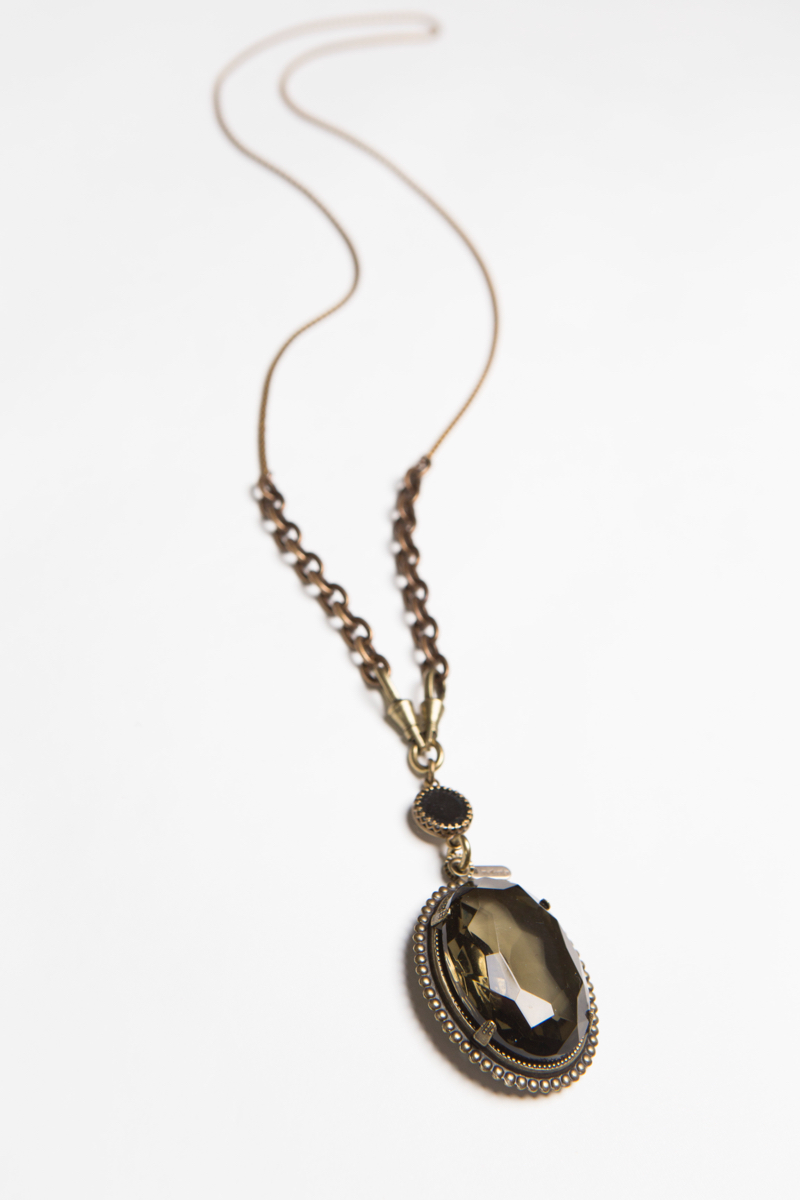 Vintage Smoky Faceted Quarz Stone / Hematite / Brass/Bronze Elements / 32" L / Wear Long or Lariat Style