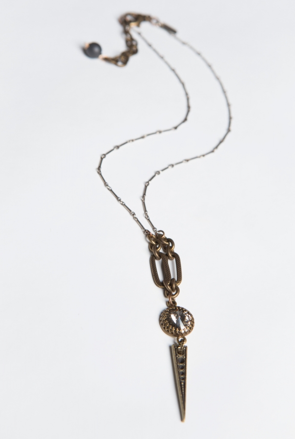 Austrian Silver Crystal / Sterling Silver & Bronze Chain / 17-18.5" Adjustable Length