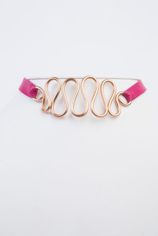 Hot Pink Lambskin / Bronze Swirl / Choker Style / Double to wear as Bracelet