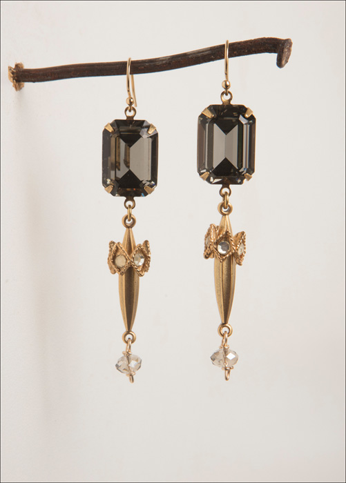 Vintage AB Emerald Cut Crystal / Plated Gold / 3" Length, 14kt. G.F. French Wire
