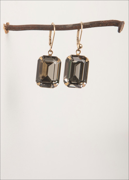 Vintage Austrian Emerald Cut Crystals 1 14" L / 14kt. G.F. Lever backs
