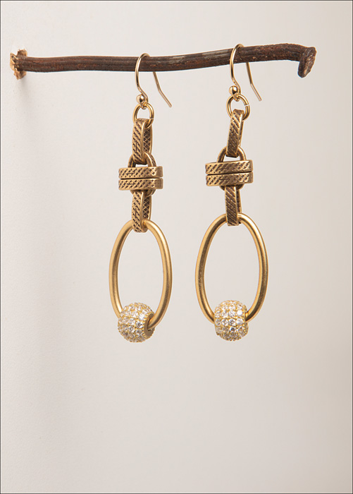 Vintage Textured Plated Gold Pave 2.5" L / 14kt. G.F. French Wires