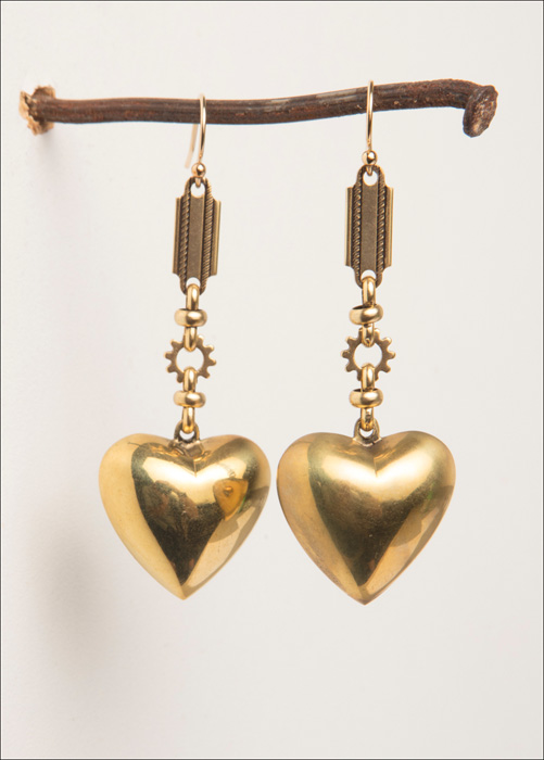 Vintage Puffy Heart / Plated Gold Chain 2.5" L / 14kt. G.F. French Wires
