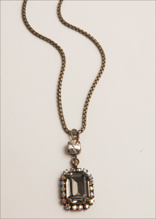 Vintage Emerald Cut Austrian Crystal Bronze Chain / 16.5-18.5" Adj. Length