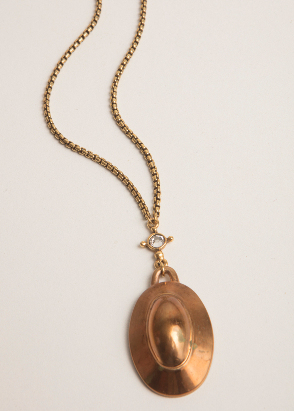 Vintage Bronze Domed Pendant / Plated Gold Chain / 16.5-18.5" Adjustable Length
