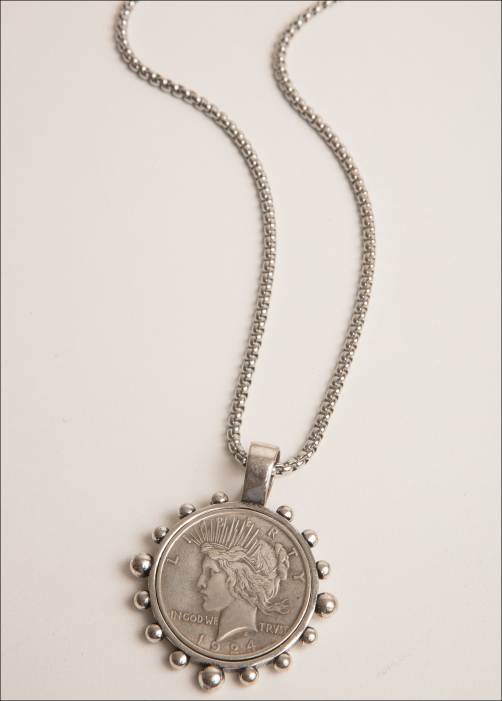 Vintage USA Authentic Peace Dollar Stainless/34"Length/Double as a Choker