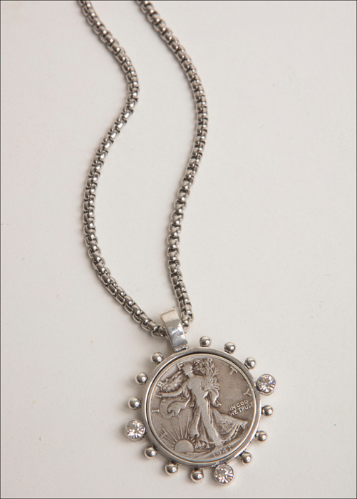 Vintage Silver USA Walking Liberty Coin Stainless Chain/16-18" Adjustable Length