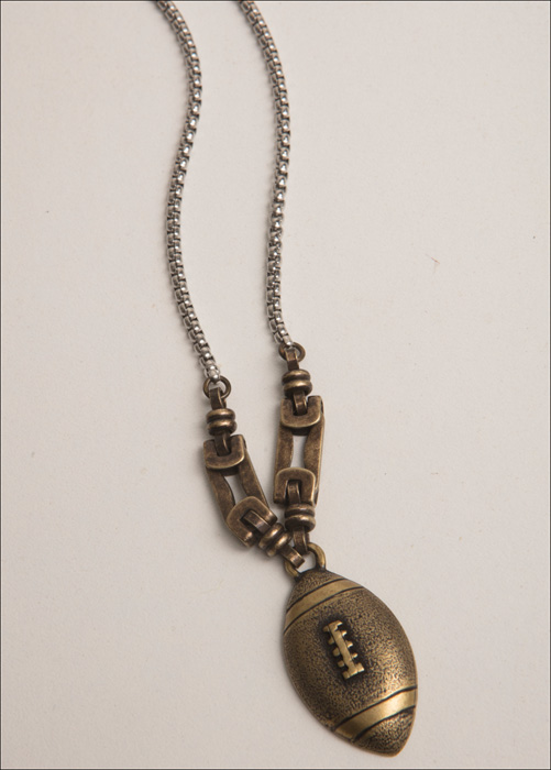 Vintage Bronze Football Pendant / Brass Ox / Stainless / 16-18.5" Adj. Length