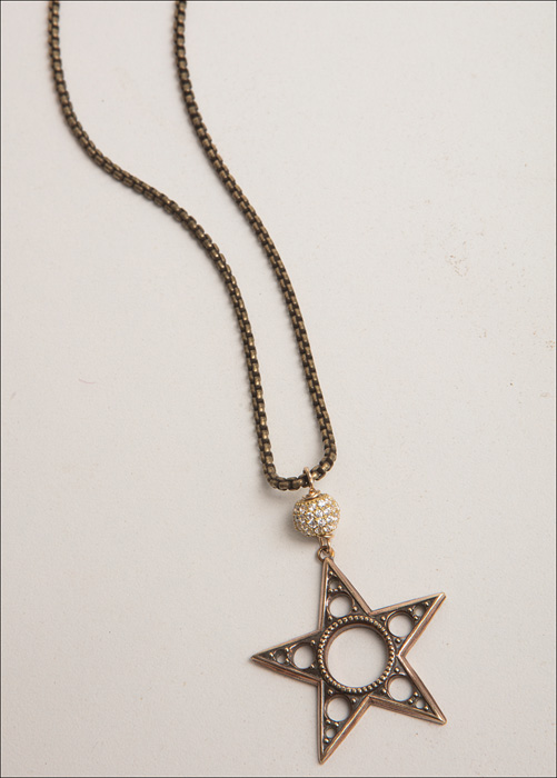Vintage Cast French Stare / Pave Crystal Bronze Chain / 16-18" Adjustable Length