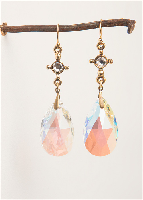 Vintage Aurora Borealis Crystal 2.5" L / 14kt. G.F. French Wires