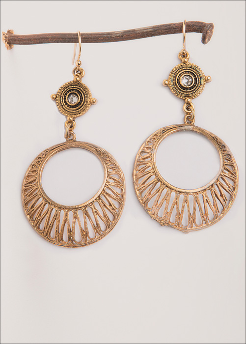 Vintage Domed Hoop / Crystal 2.5" L / 14kt. G.F. French Wires