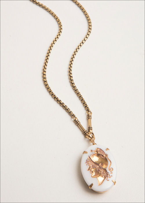 Vintage Warrior Cabochon / Plated Gold Chain / 17-19" Adjustable Length