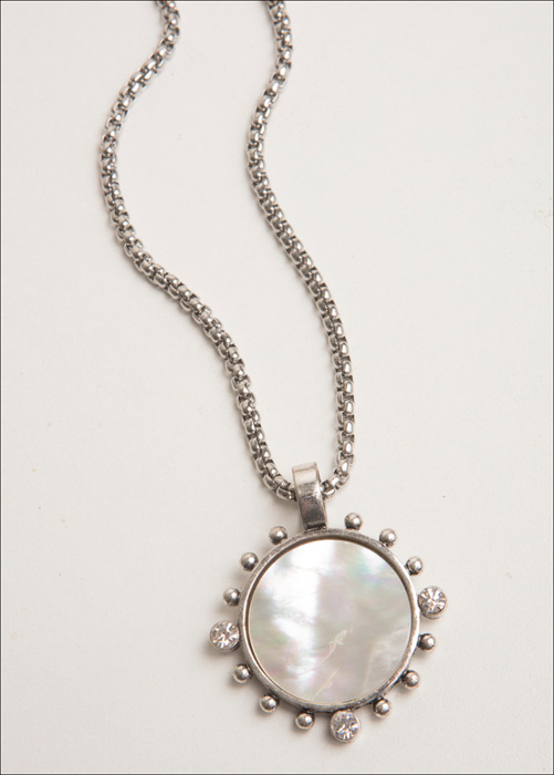 Stainless Chain / MOP Cabochon & Crystal / 16-18" Adjustable Length