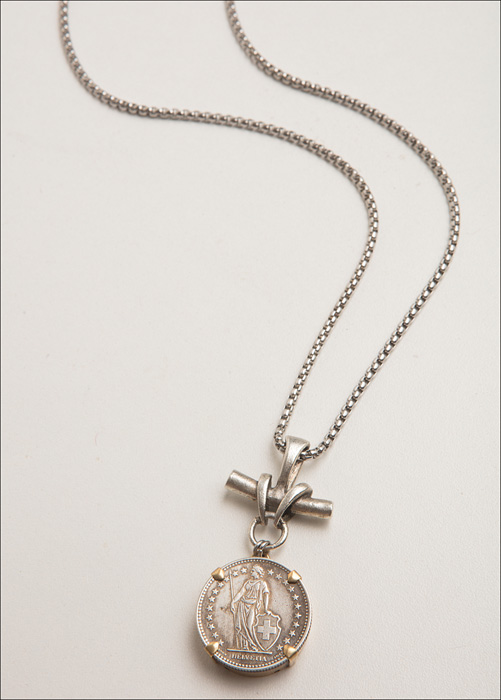 Vintage Swiss 2 Franc Helvetia Coin Stainless / 34" / Wear Long or Double